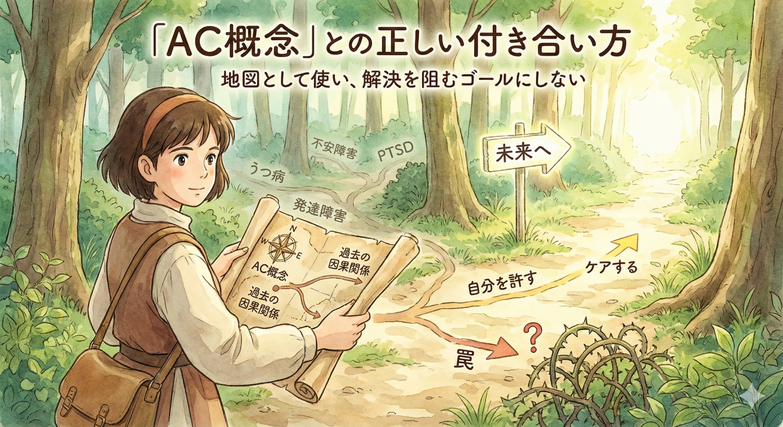 ACという言葉は、過去の因果関係を整理し、自分を許すための「地図」として使ってください。診断や結論として固定化せず、今の自分をどうケアしていくかに目を向けることが大切です。
