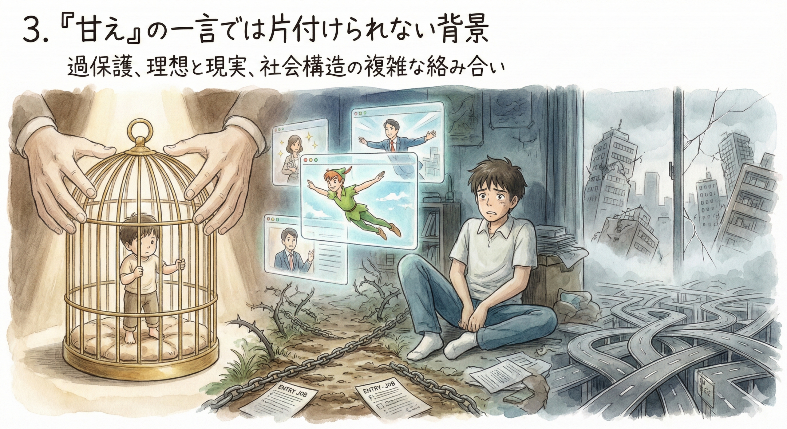 「いつまでも自律できない」「責任を負うのが怖くて動けない」……。 世間では「ピーターパン症候群」という言葉が、時に揶揄や「甘え」の象徴として使われることがあります。しかし、その内実を探っていくと、そこにあるのは単純な幼さではなく、現代社会を生きる上での深い「生きづらさ」と「防衛本能」です。