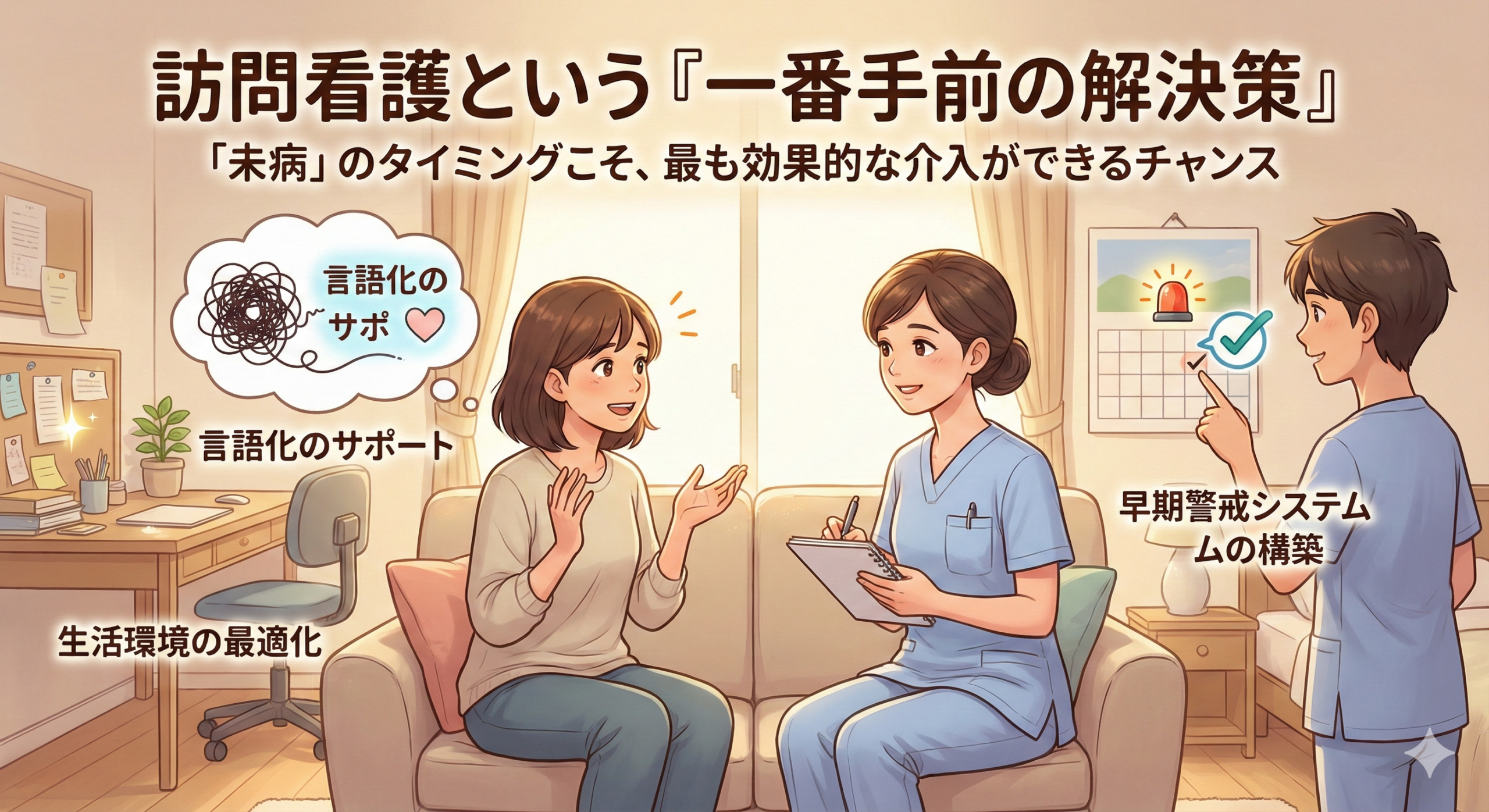 * 早期警戒システムの構築: 調子が悪くなりそうなサインを一緒に見つけ、早めに対処できるよう伴走します。