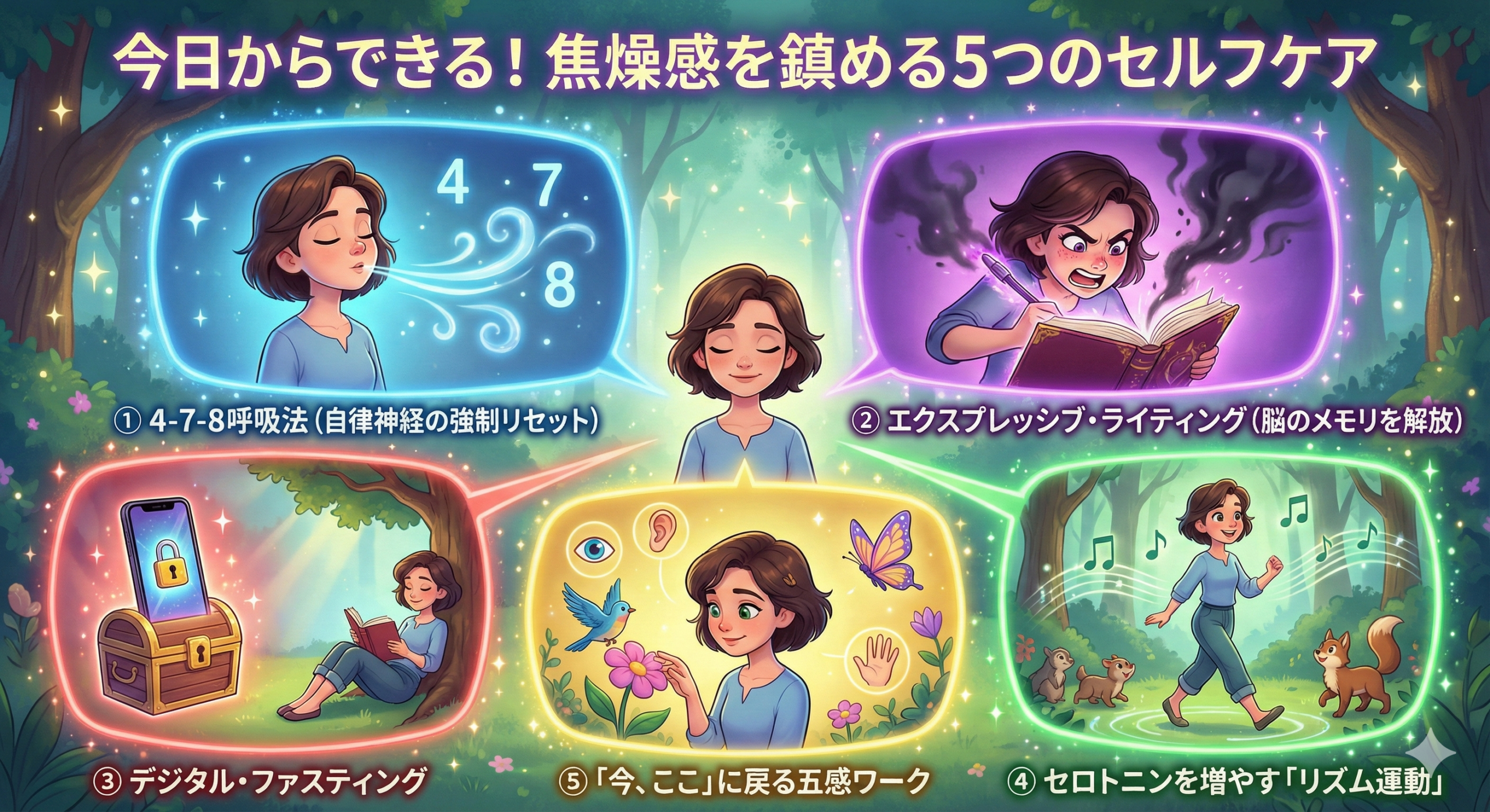 4. 今日からできる!焦燥感を鎮める5つのセルフケア